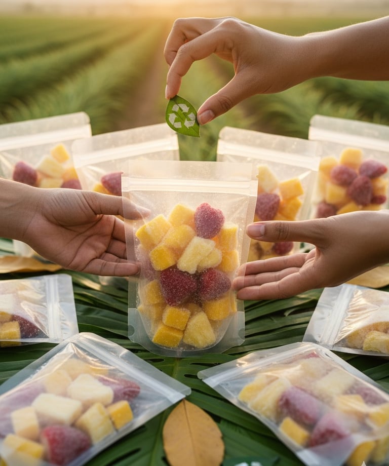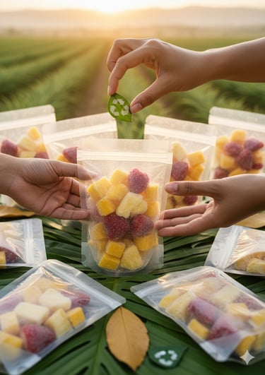 Priorizamos materiales reciclables y opciones con menor impacto ambiental; buscamos reducir residuos en cada etapa y facilitar el correcto reciclaje de nuestros empaques.